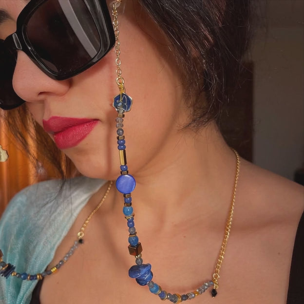 Blue Wave brings elegance to eyewear with rich ocean-toned beads, gold details, and a handcrafted finish that blends practicality with charm. Whether you're pairing it with your sunnies or reading glasses, this piece keeps your style effortlessly chic while keeping your frames close.