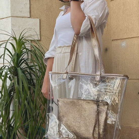 Golden Clear – Transparent Tote Bag with Metallic Gold Pouch